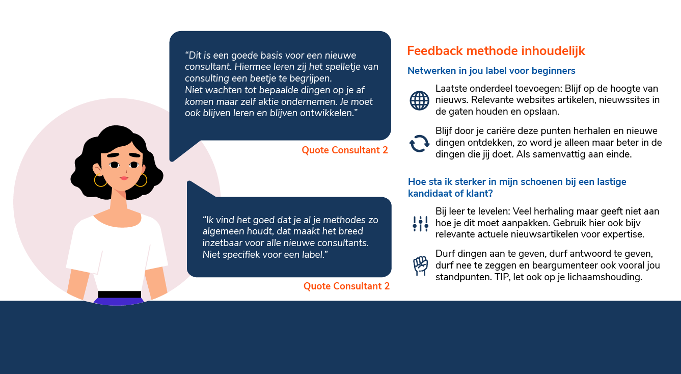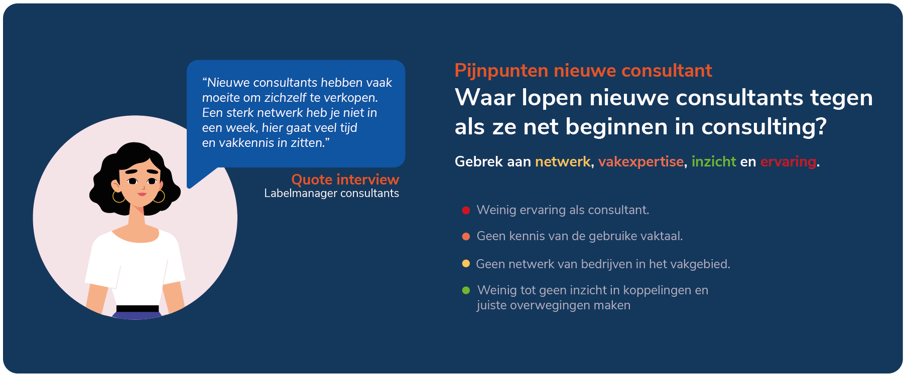 Na meerdere interviews met verschillende (ervaren) consultants ben ik tot een aantal interessante inzichten gekomen. Deze inzichten zullen mij verder in het project gaan helpen om tot een digitaal product te komen voor de doelgroep.