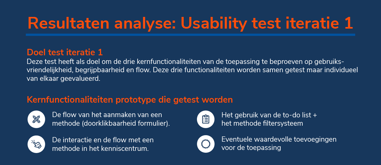 De wireframes zijn in deze fase getest op de usability en gebruiksvriendelijkheid van de 4 kernfunctionaliteiten die zijn uitgewerkt in de wireframes. Hierbij zijn per functie vooraf opgestelde vragen gesteld en is er ruimte gemaakt om vrij feedback/suggesties te geven. Er is getest bij mensen van het marketing team (experts digitale media) en consultants (eindgebruikers) uit de doelgroep.